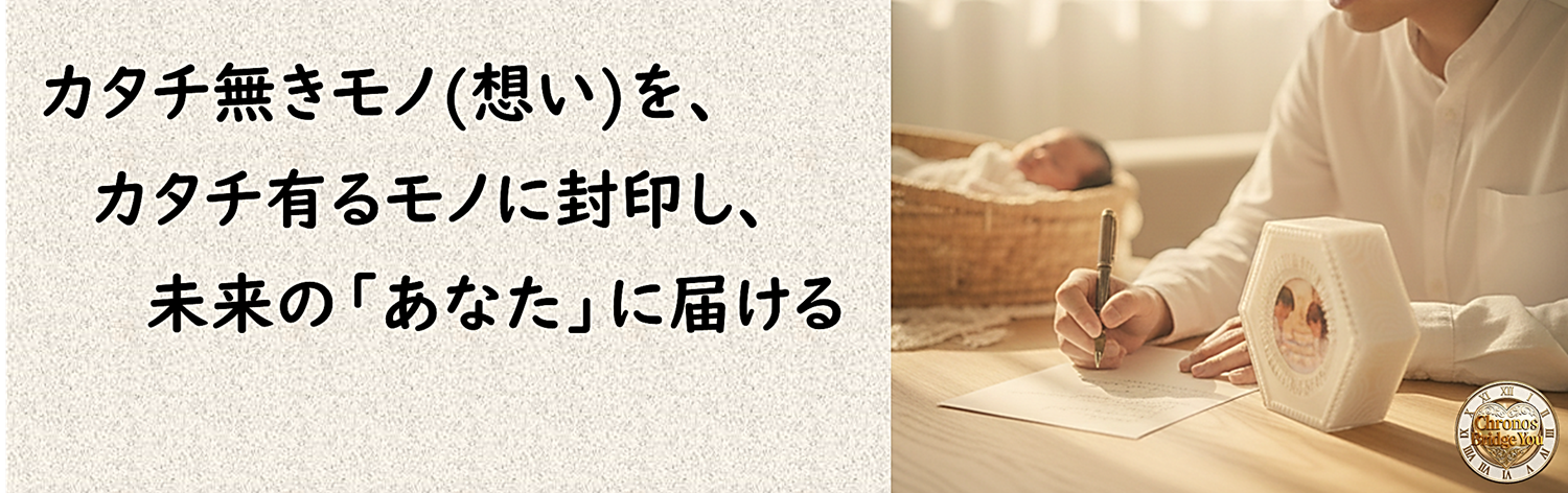 誕生までの物語と我が子への溢れる想いと真心を、純真無垢なまま手紙やメモリーカードに託し、“未来の我が子”へ届ける、はじまりのタイムカプセル。